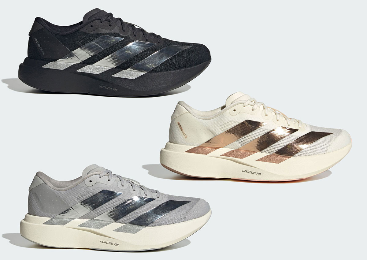 The adidas Adizero Evo SL “Metallic Stripes” Pack launches in Fall 2025 at adidas.com and at select retailers. Each pair will be available for $160 USD.