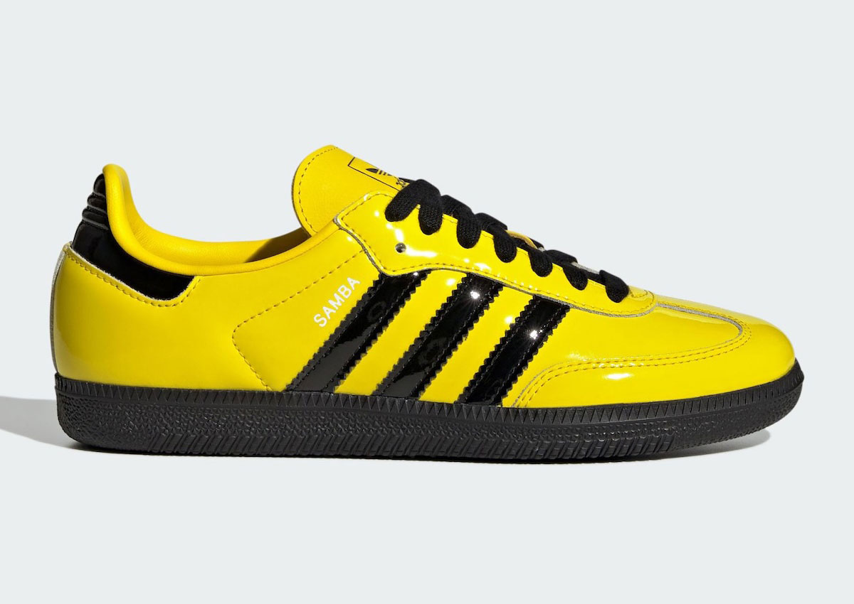 Sporting an all-patent leather upper and black accents on the Three Stripes, heel, and laces, the shoe sports a devil-may-care attitude. Meanwhile, the black rubber outsole maintains the heritage color of the classic Samba DNA, while infusing a streetwear vibe. That rare mix of sports legacy and vintage film nostalgia is what makes this sneaker special.