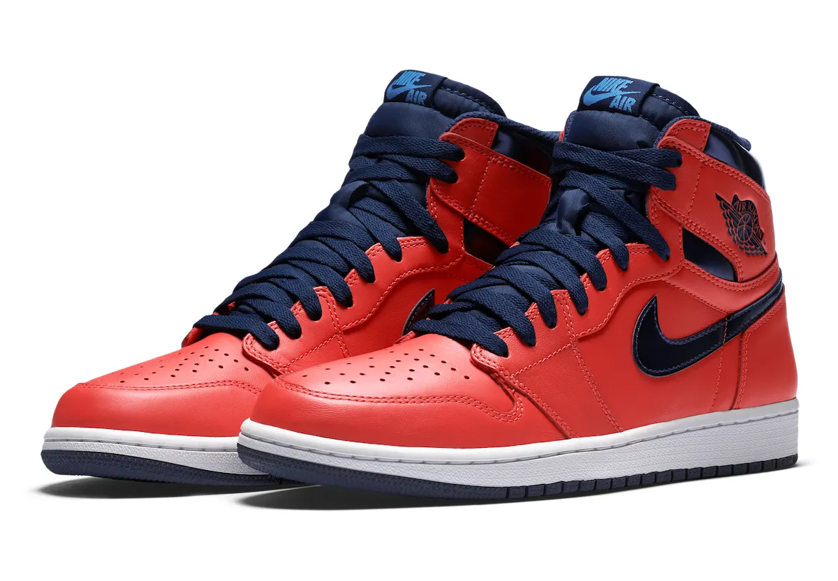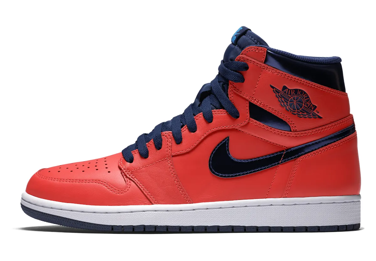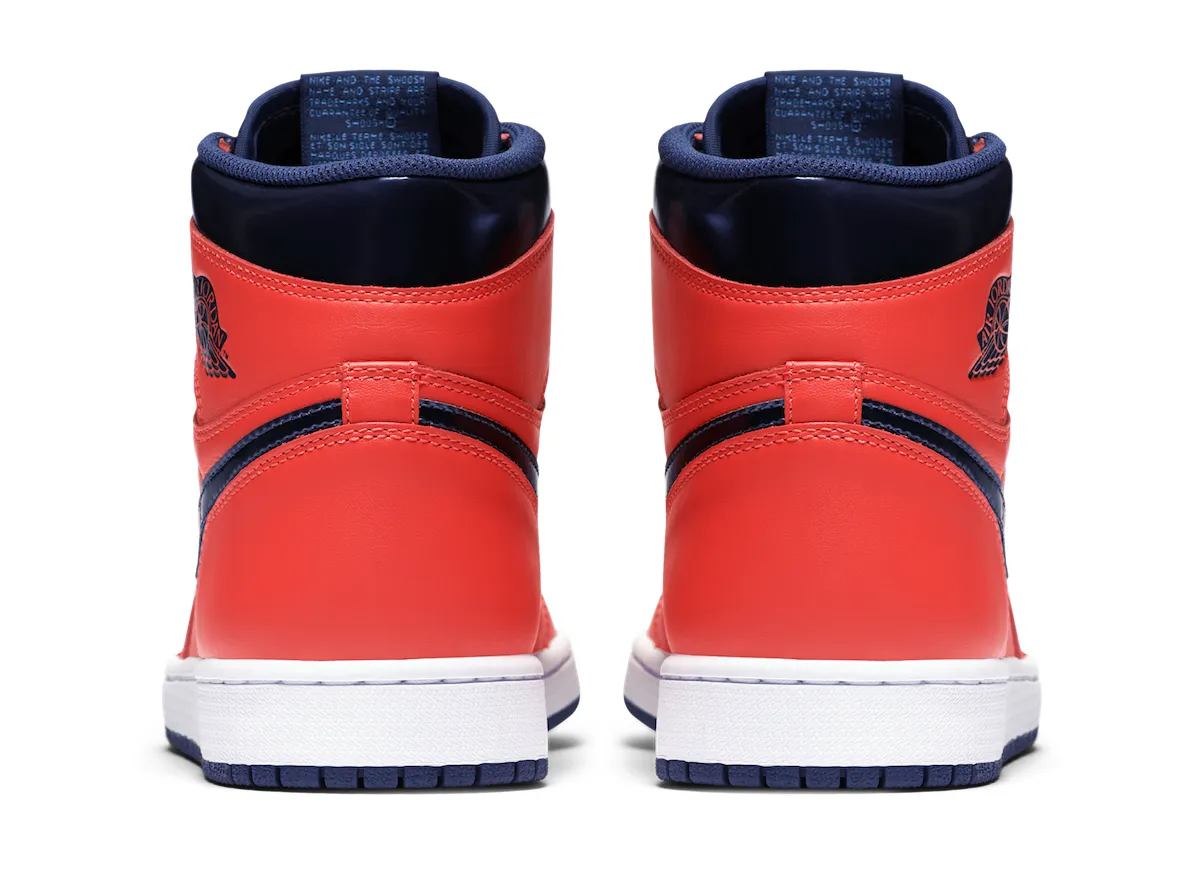 During that interview, Jordan and Letterman famously joked that the Air Jordan 1 was “ugly.” That moment became sneaker history. This colorway pulls directly from the bright orange tracksuit Jordan wore on the show, paired with deep navy accents for contrast. The mix feels loud but intentional, much like the era itself.