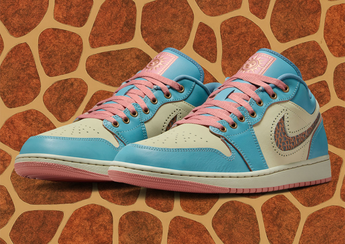 The Air Jordan 1 Low “Somos Eternos” launches in Denim Turquoise, Red Stardust, Light Stone, and Smoky Blue.