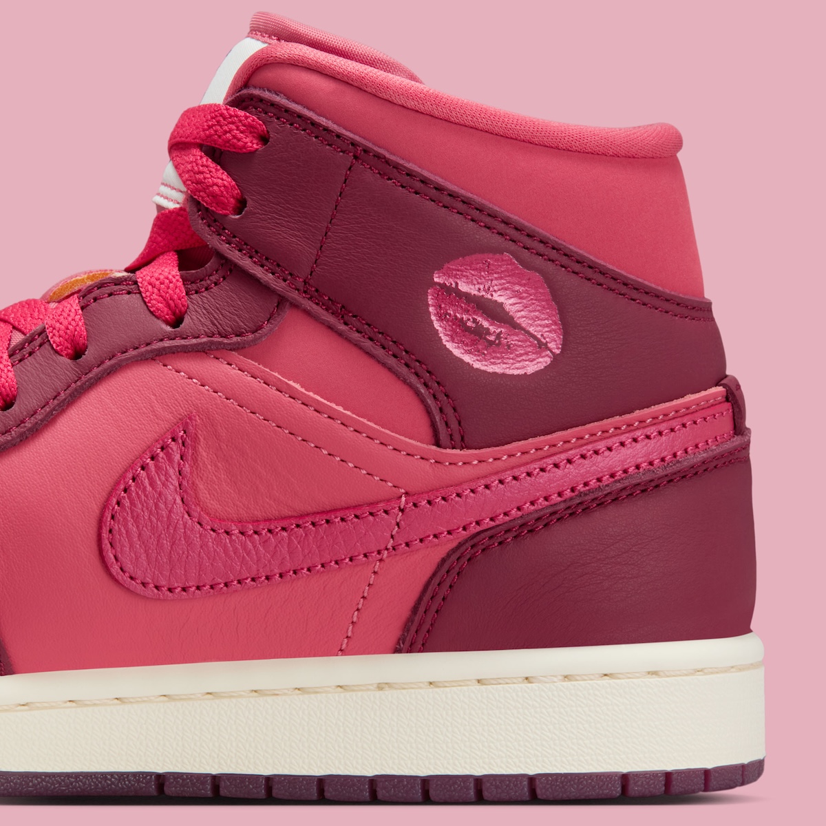 Lipstick-kiss graphics appear across each silhouette, bringing character to the pack. The themed boxes match the mood and help push the idea further. The Air Jordan 1 Mid definitely feels louder, whilst the Air Jordan 1 Low offers a quieter style.
