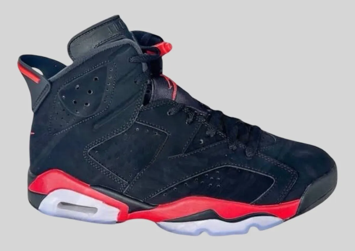 UPDATE 9/3/25: Here is a first look at the Air Jordan 6 “Reverse Infrared” releasing February 14th during 2026 NBA All-Star Weekend. Inspired by a late ’90s sample, it flips the iconic Infrared layout. The shoe adds a stealthy all-black upper without 3M and features Nike Air branding on the heel. This release also joins the “Cap and Gown” as part of the 25th Anniversary celebration of the AJ6. Stay tuned for more updates ahead of the launch.