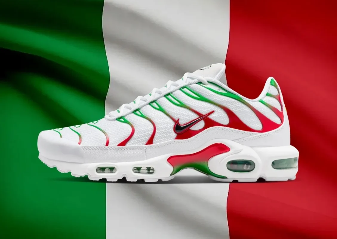 The Italian flag colors are on prominent display on this Nike Air Max Plus “Italy” colorway.