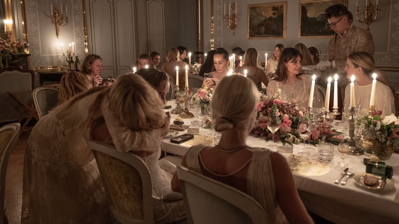 No Versailles fête is complete without a feast. After holding court in the galleries, guests returned to the Airelles Château de Versailles for a seven-course dinner. Footmen in 18th-century frock coats ushered everyone to tables piled with fruit, candles, and antique books. Their ringleader announced each course with the emphatic stomp of a walking stick: coated leeks, candied duck, and a delicate mushroom pastry among the offerings.