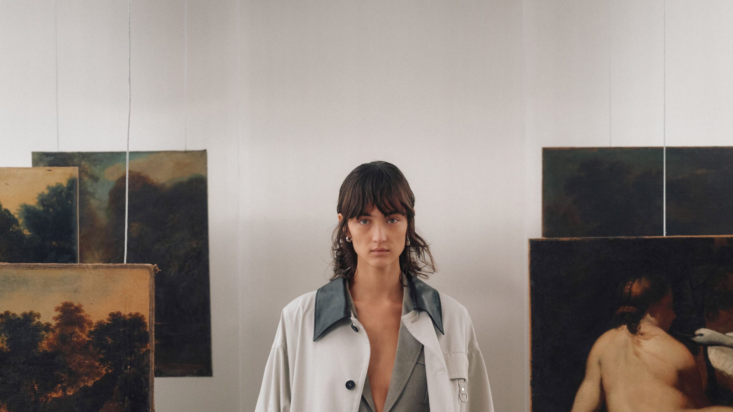 This season, she juxtaposed the classical art of the 19th century—elegant academic studies of female nudes alongside mythological subjects such as Leda and the Swan—with the industrial atmosphere of her showroom. She let the subtle eroticism of those images play against the starkness of the space and the clean lines of a collection that borrowed from the androgynous lexicon of masculine dressmaking.