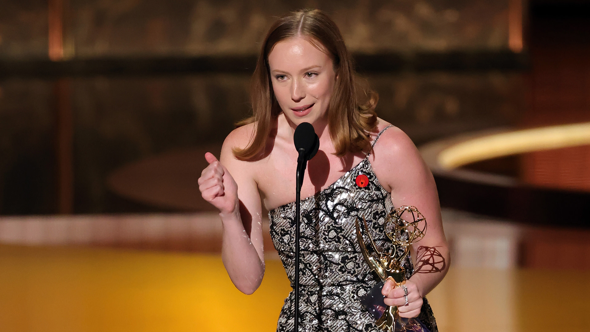 Einbinder won the Emmy for Best Supporting Actress in a Comedy Series for her role in Hacks, and she first took a moment to thank the creators of the show for changing her life. But when it was time for her to leave the stage, Einbeinder had one last message to the audience. “Finally, go birds, fuck ICE, and free Palestine,” she said. “Thank you.”