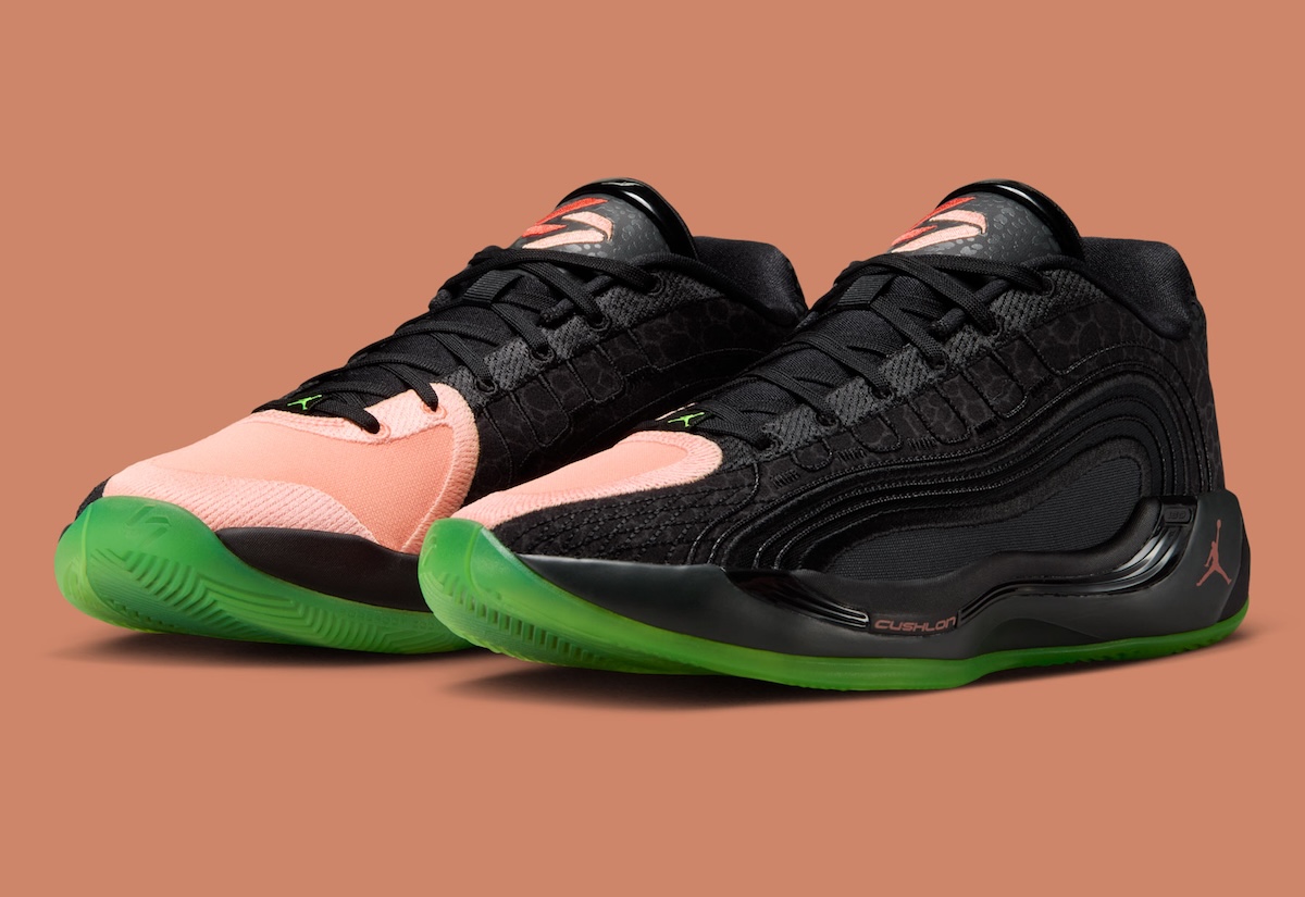 Black safari print overlays on Luka Doncic’s newest signature shoe is contrasted with an Orange Pulse forefoot. A combination that’s balanced by a simple black midsole and accented by Team Orange and Electric Green accents for energy. That combination allows the sneaker to look both aggressive and versatile on the court.