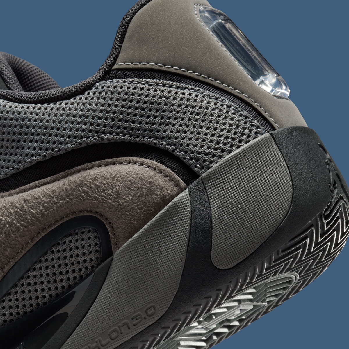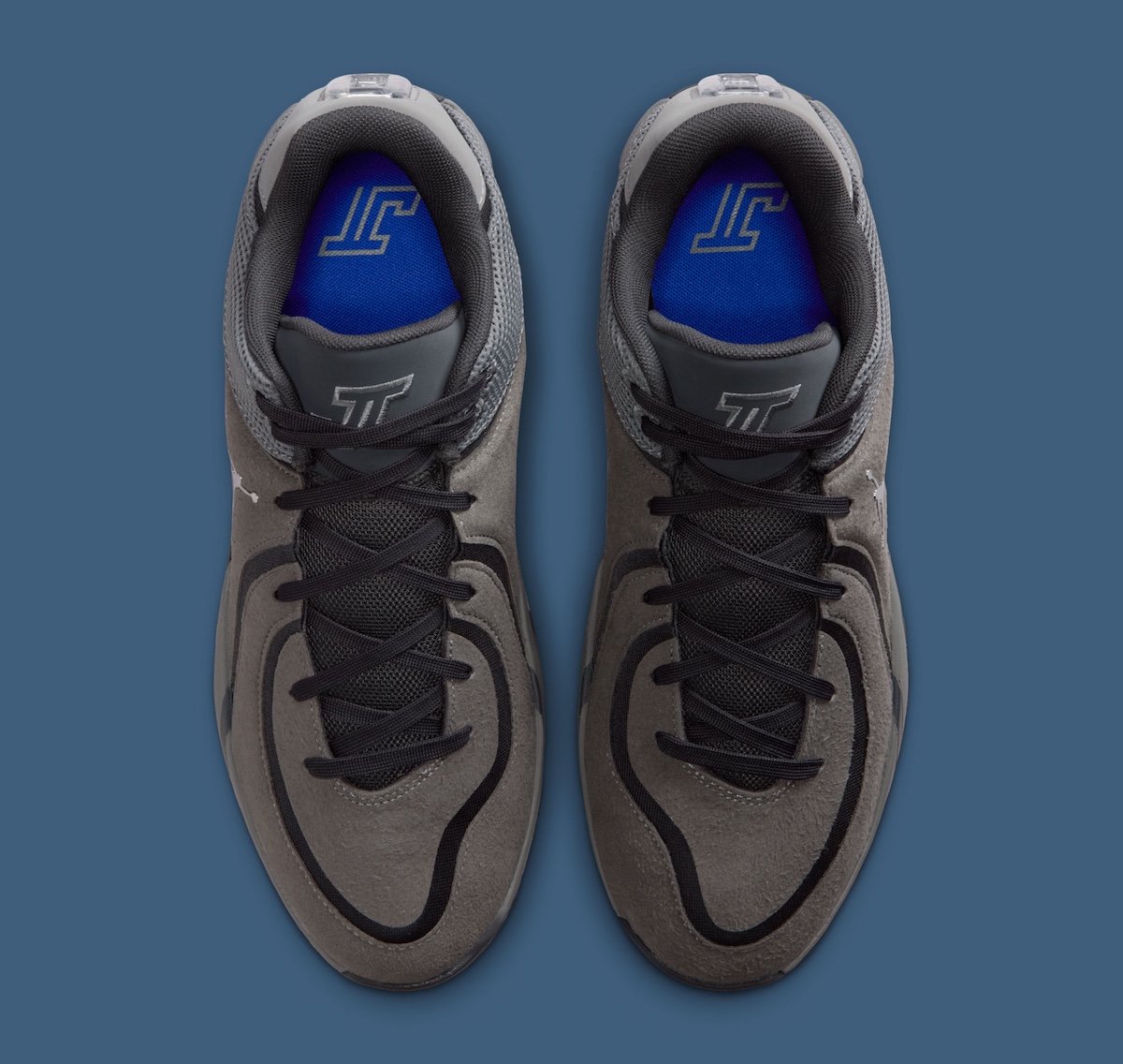 A hairy suede upper helps the shoe feel high quality, textured, and ready for any lifestyle moments. Smoke grey dominates the upper, while black wavy overlays provide contrast and fluidity. The heel features a breathable mesh panel that will make wearing the shoe for hours comfortable. Tatum’s signature JT logo sits on the tongue, and metallic silver Jumpman marks the side panel.