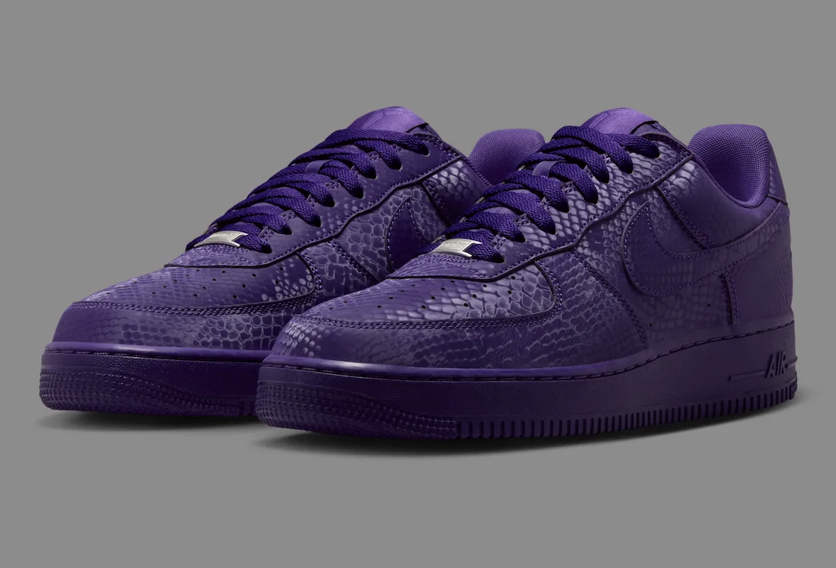 The Kobe Bryant Air Force 1 Low “Court Purple” brings serious energy for Fall 2025. Dressed in a full purple snakeskin upper, this pair bites hard—just like Kobe did on the court. It’s bold, it’s fierce, and it screams Lakers pride from heel to toe.