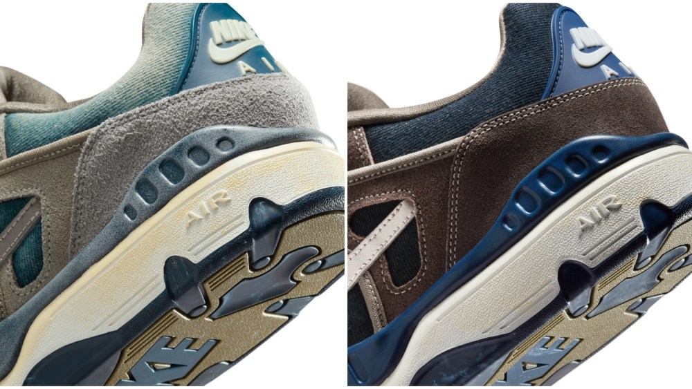 The duo’s Enigma Stone colorway opts for darker shades, using a rich indigo denim base with brown suede overlays and navy coloring throughout the midsole. Meanwhile, the Olive Gray pair appears as if it’s been lovingly worn like a favorite pair of jeans. Its suede is rougher, its denim paneling faded and the midsole features a pre-yellowed effect.