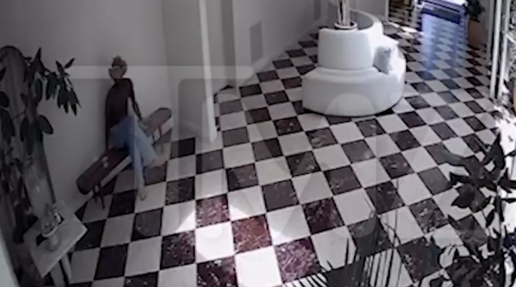 In the five-minute footage, published by TMZ, 26-year-old Nas appears to walk aimlessly around the Short Stories Hotel in Hollywood, wearing a cowboy hat and boots. He eventually sits on a bench in the hotel lobby and removes his shirt, foreshadowing his later state of undress.