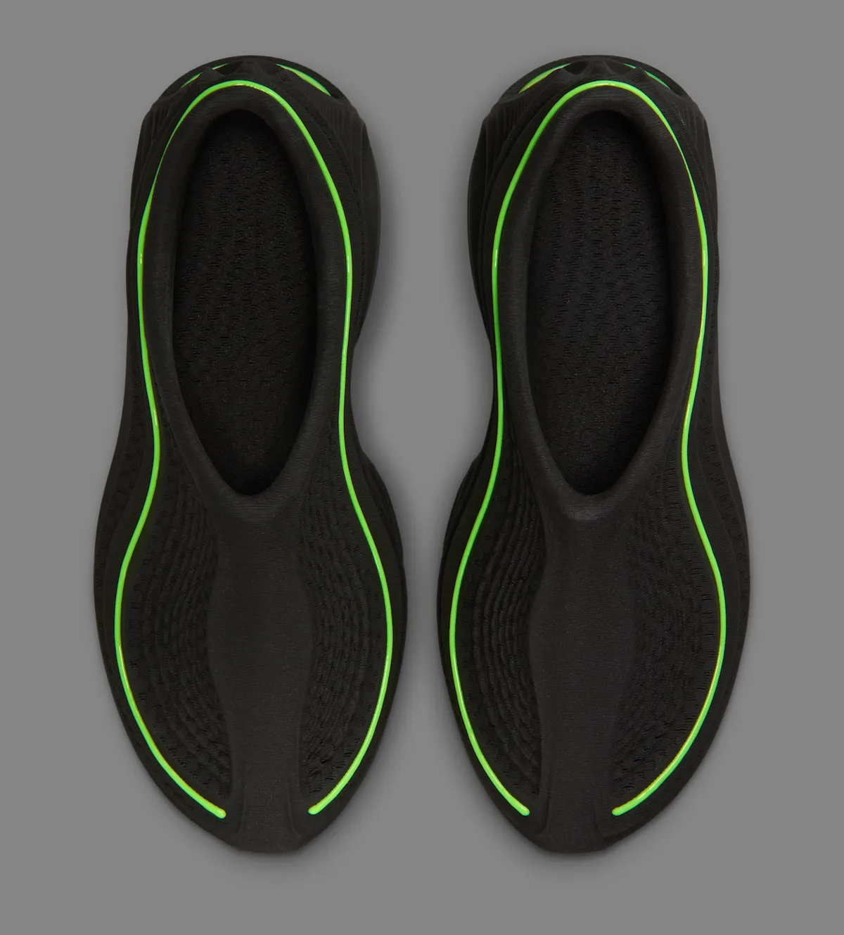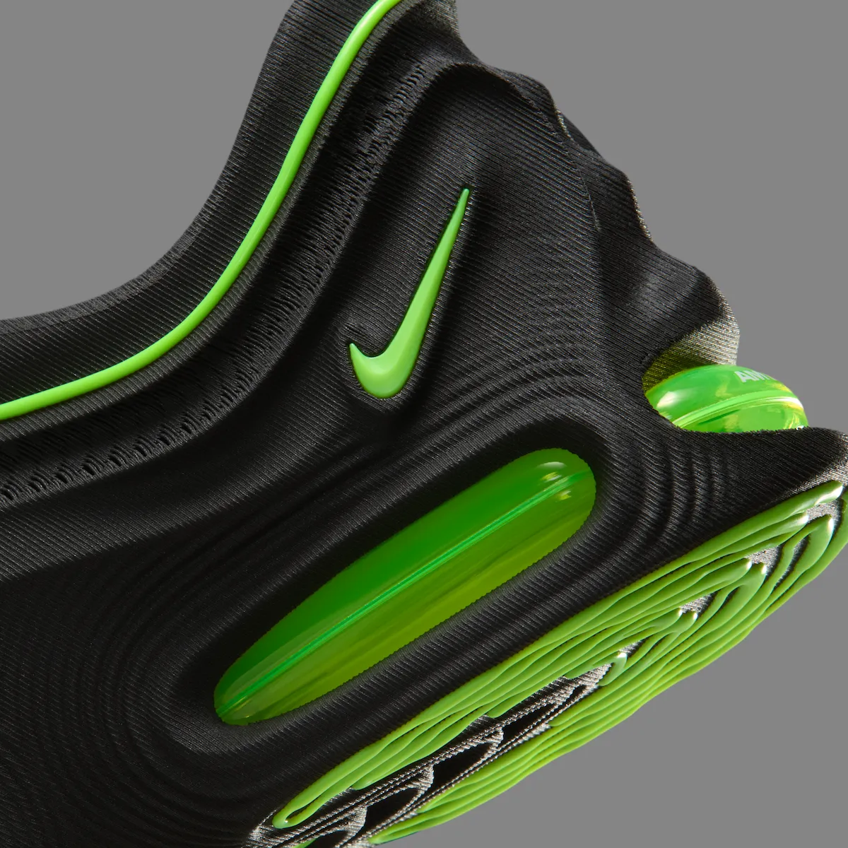 Sporting a sculpted, lace-less upper, the silhouette borrows key elements from the Air Max 1000 and marries it with a full-length Air unit from the legendary 95. Rhythmic grooves and patterns animate the 3D-printed build, nodding to Sergio Lozano’s original layered masterpiece while bold Volt accents electrify the sleek, dark frame. That bold contrast also helps the sneaker sport a clear “digital-meets-retro” aesthetic that will not go unnoticed.