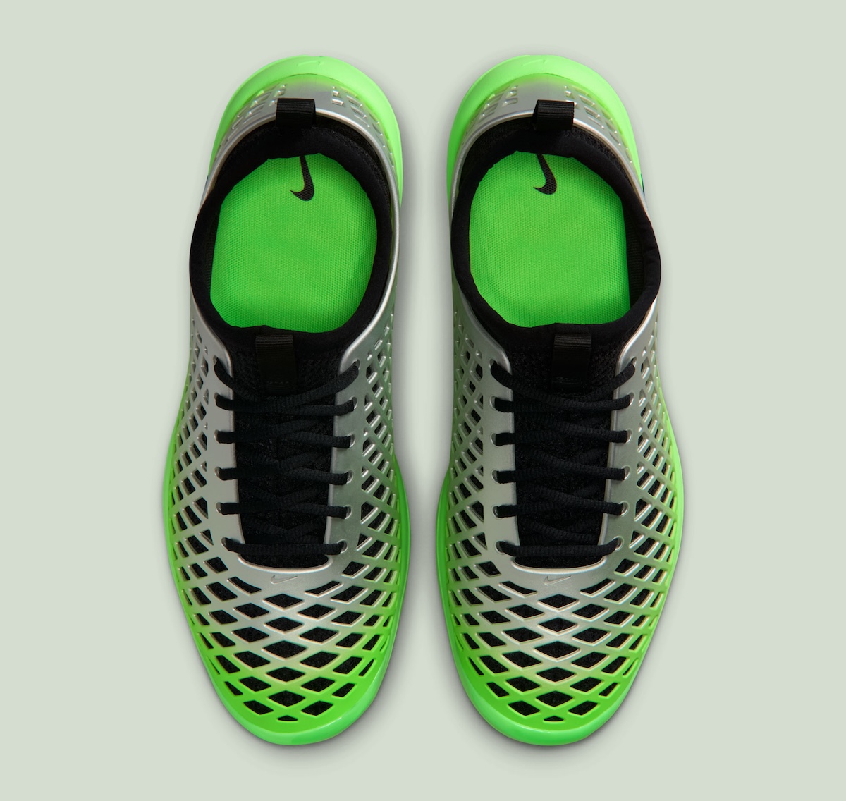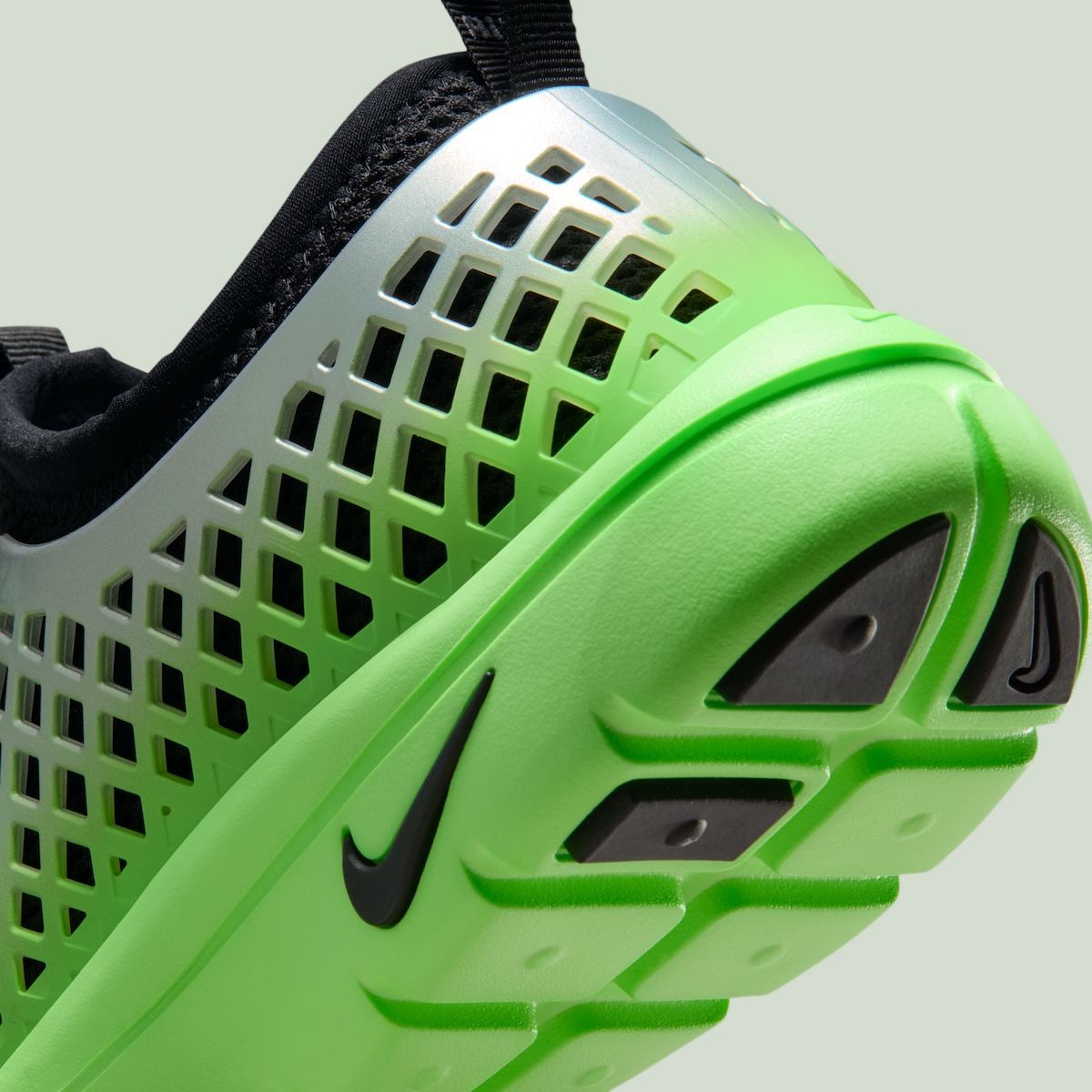 The Metallic Silver/Voltage Green-Black colorway turns it up. The gradient that shifts from silver into bright green catches the eye quickly, and that’s the little detail sneakerheads will love. It evokes that wild experimentalism Nike loved dabbling with in the late 2000s.