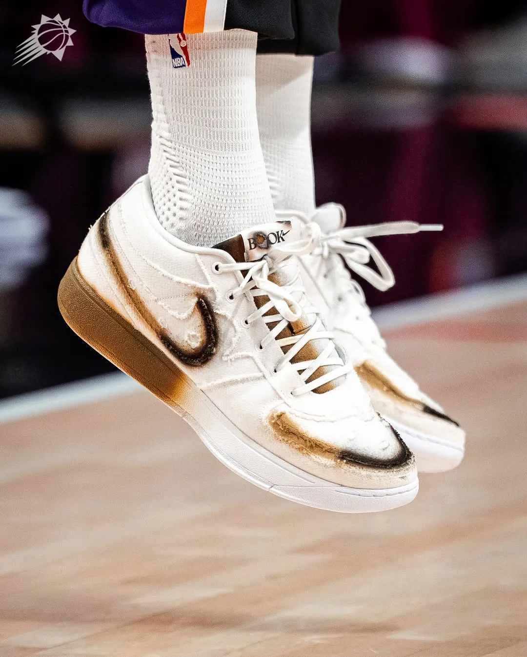 Nike has ended signature chapters with symbolic makeups before, and this approach mirrors that tradition. The “Torched” Book 1 arrives as the final bridge toward Booker’s upcoming Book 2 model, creating a clean transition between eras.