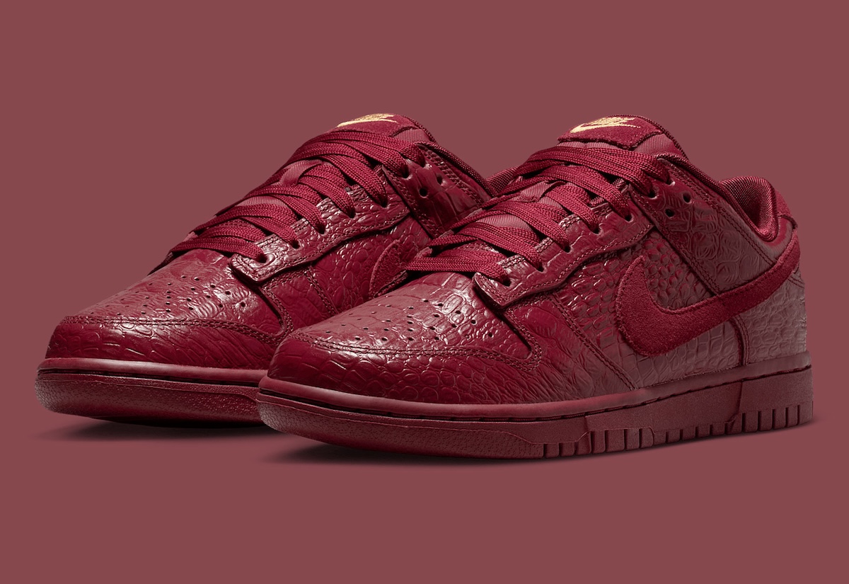 The Nike Dunk Low “Team Red Croc” releases on November 1, 2025 for $130. Find sizes and stock at Nike.com and select retailers.