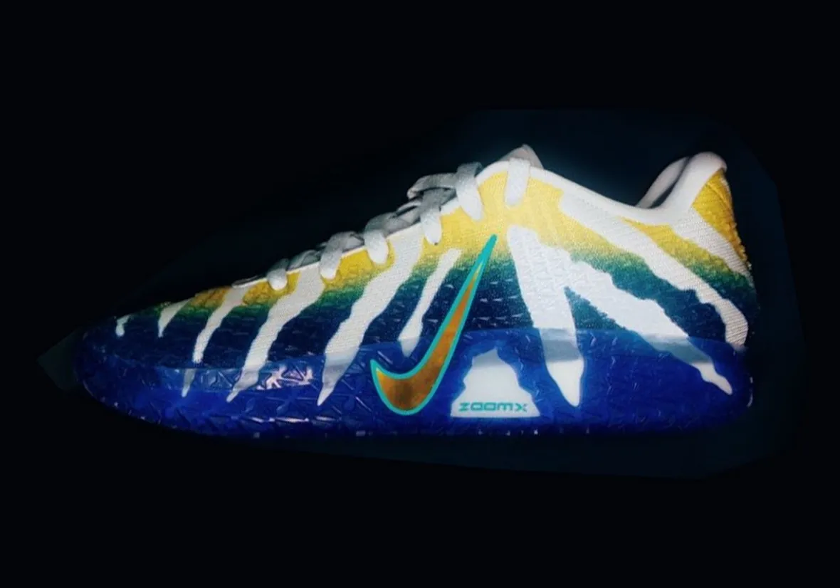 The new looks offer some real storytelling potential. There’s a bold yellow and black pair with a cracked red Swoosh that gives off “Bruce Lee” vibes. Another features a tropical-style ombré fade that stretches from upper to outsole — almost like a summer sunset on foot. A Memphis throwback-colored pair rounds things out, mixing deep navy with teal and yellow accents.