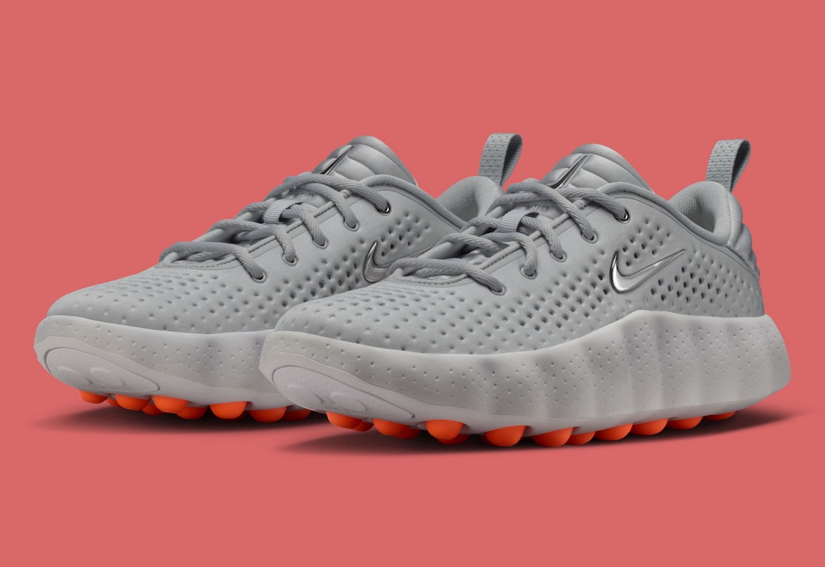 The new silhouette is a futuristic-forward take on their latest “Mind” series. The shoe features a Light Smoke Grey, Photon Dust, Hyper Crimson and Chrome colorway, with a perforated upper and sculpted foam tooling. A Chrome Swoosh stands out on the soft grey upper shell with Hyper Crimson outsole pods, adding some life and bounce to the shoe.