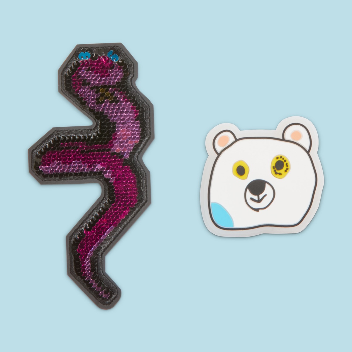 When the lights drop, the outsoles glow in different colors, which fits her “why not?” approach. The gold snakeskin pieces come straight from her fascination with reptiles, especially the banana python she talks about nonstop. She even worked in small pieces from her world, including a Pinkie Doo Doo hangtag that looks like it came straight off her bedroom shelf.