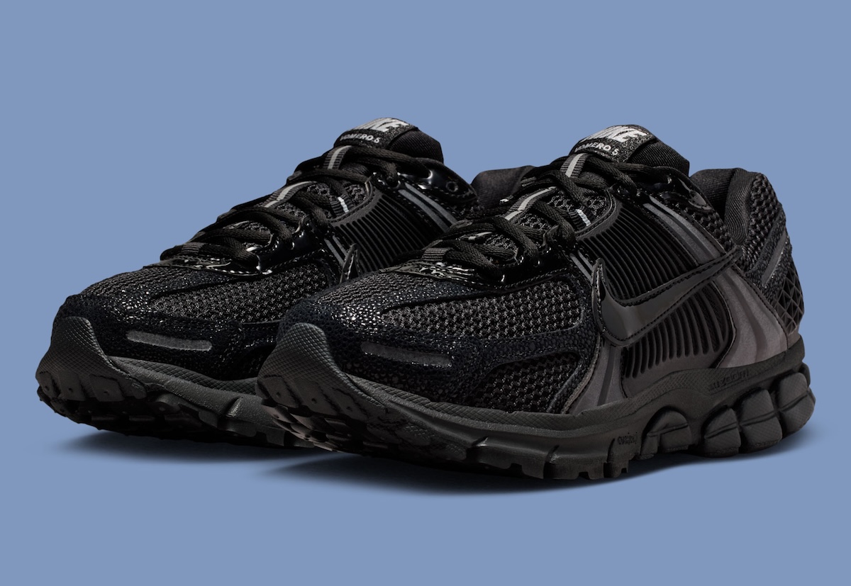 The Nike Vomero 5 “Black Patent” takes a familiar model and gives it an unexpected shine.