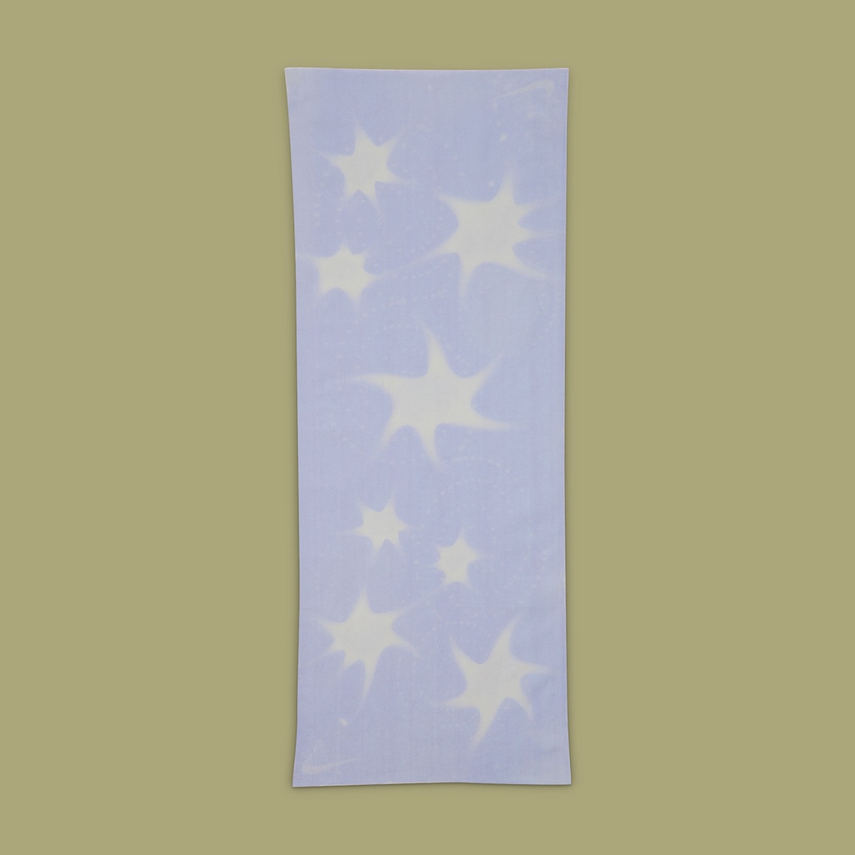 A soft yellow-and-grey blend ties the palette together, while the included purple towel leans deeper into the space angle. This small accessory may remind some fans of past Nike capsules that paired shoes with themed extras.