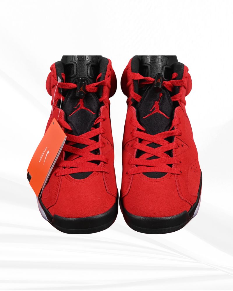 Air Jordan 6 Toro features premium red suede, original factory build, and authentic detailing. Bold colorway with black contrast, perfect for collectors and streetwear enthusiasts.