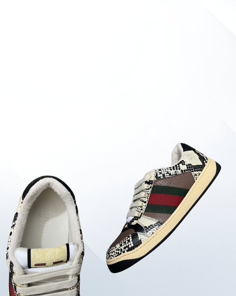 Whether paired with denim, joggers, or elevated casual outfits, the Gucci Screener Python-Embossed Sneakers stand out as an iconic vintage design that blends classic elegance with modern streetwear flair.