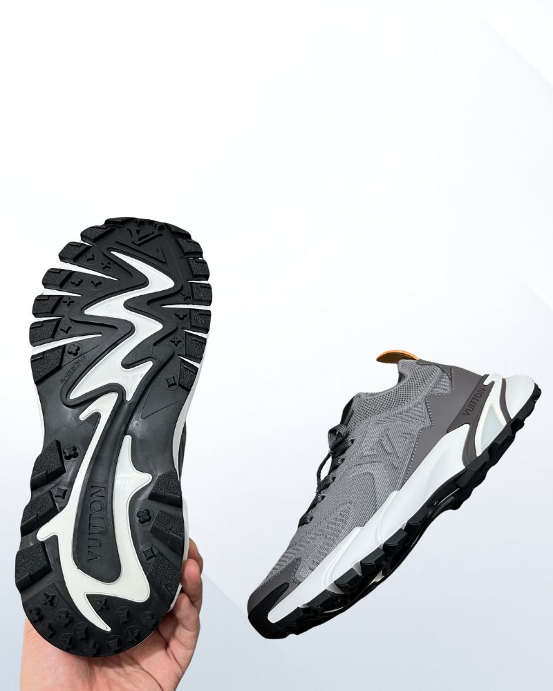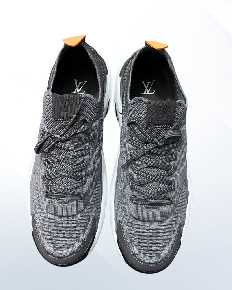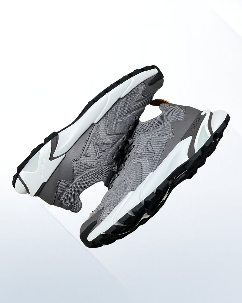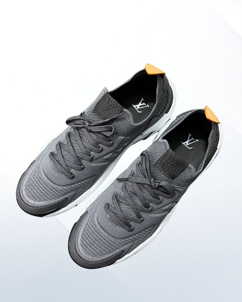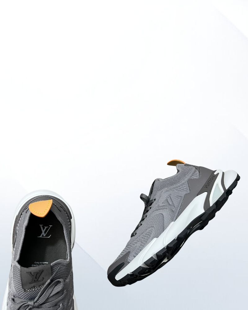Crafted from a mix of technical mesh and smooth calf leather, the upper offers breathability and premium structure. The grey color palette adds understated elegance, while the dynamic LV signature on the side highlights its modern identity.