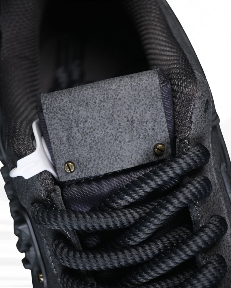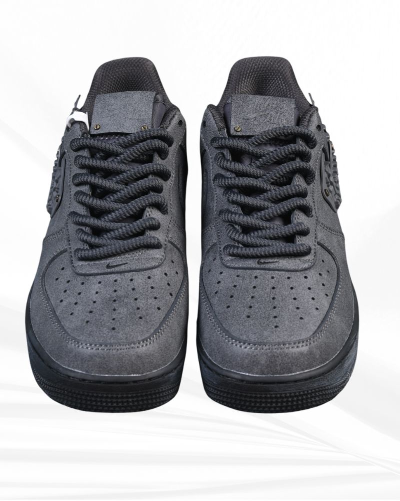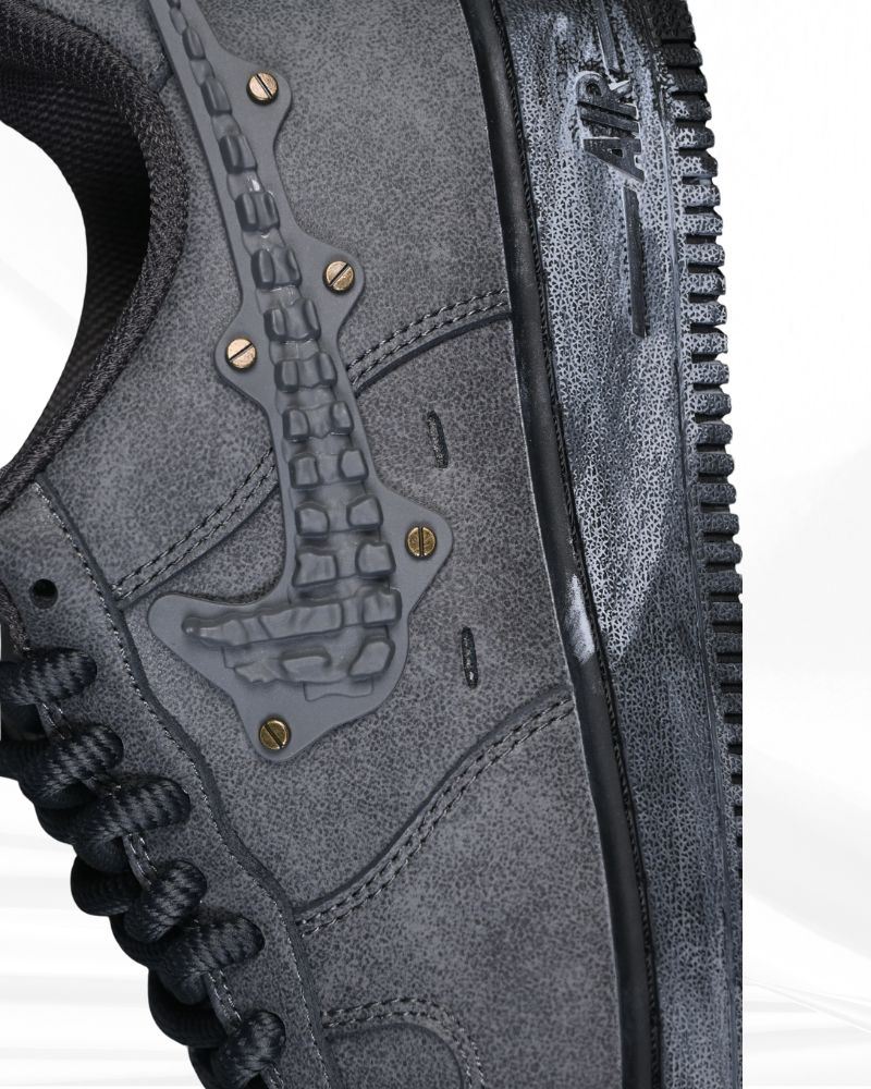 The upper showcases aged suede in Medium Ash and Anthracite tones, creating a raw, industrial aesthetic. A molded Swoosh with rivets delivers a forged-metal look, while braided rope laces give extra structure and attitude. Every detail enhances the sneaker’s unique personality.