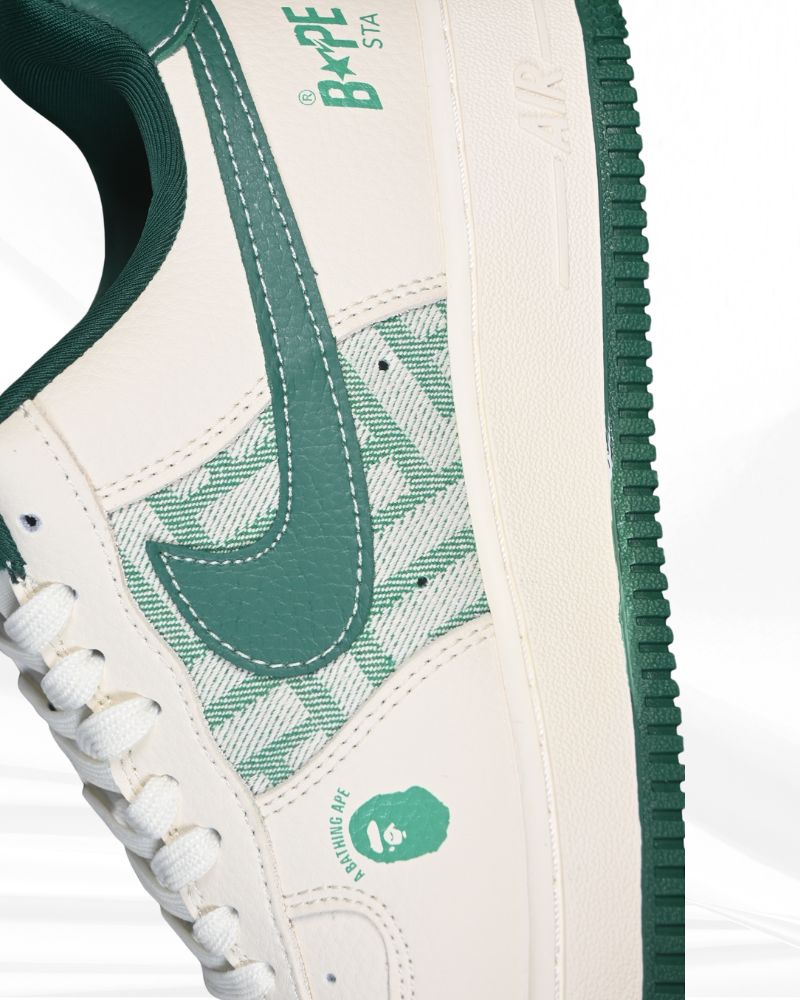 Nike Air Force 1 Low x BAPE Mint Cream merges iconic AF1 design with premium leather and fresh mint tones. A clean, exclusive sneaker made for true streetwear lovers.