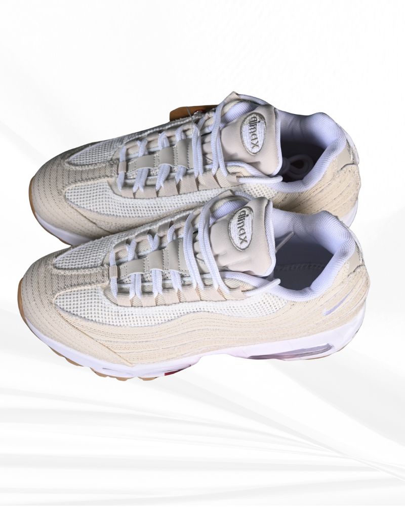 Nike Air Max 95 Levis is a legendary collaboration blending Nike’s heritage with Levi’s denim craftsmanship. This exclusive edition reimagines the classic Air Max 95 with premium ivory denim and frayed details.