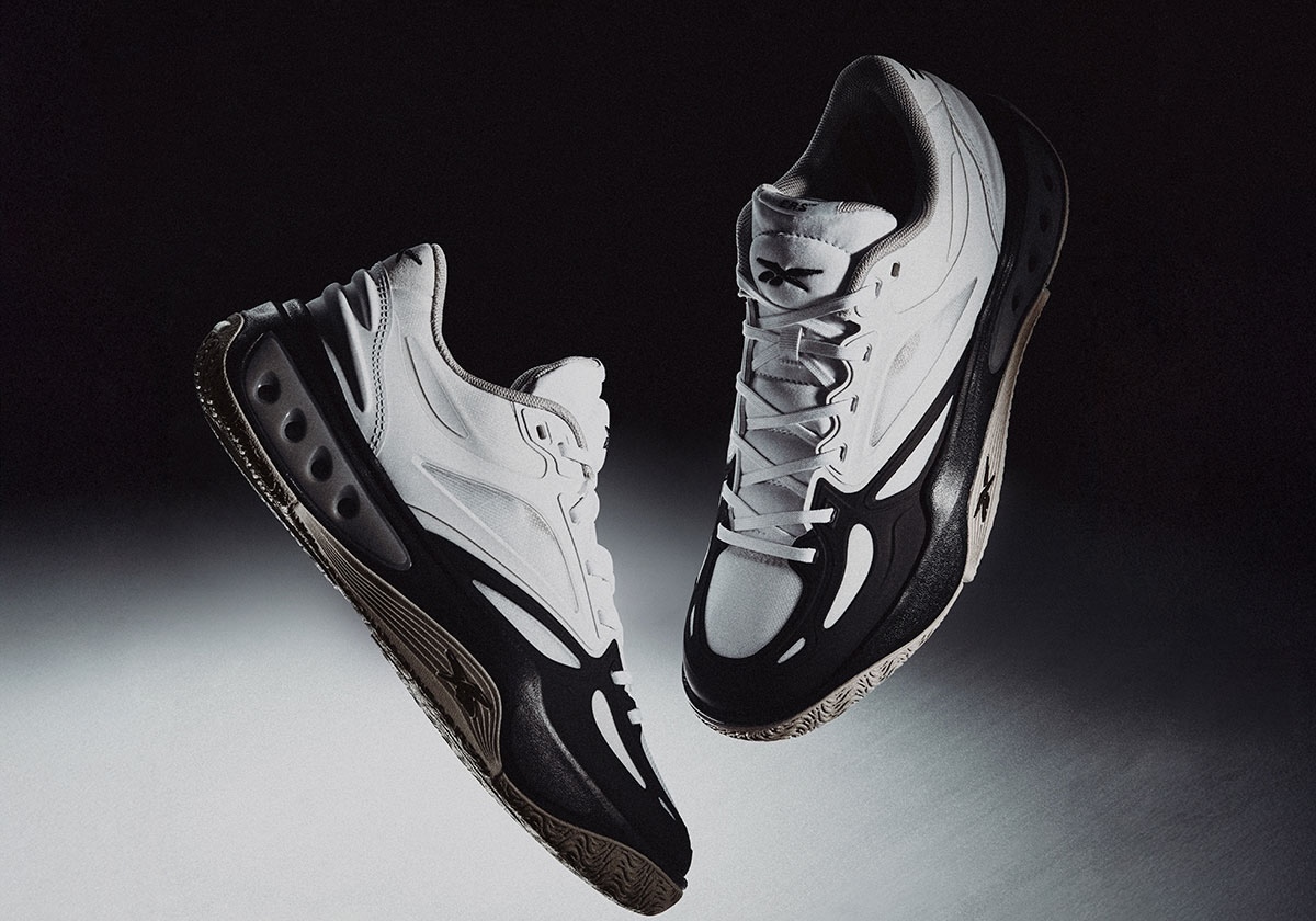 Decked in an all White/Black-Moonstone color scheme, the Engine A is constructed with layered synthetic panels over a breathable mesh upper for a streamlined, purposeful look. In-your-face black overlays slash across the upper, while Moonstone accents are used on the high-performance shaped midsole windows. That aesthetic detail is a nice reference to Reebok’s late ‘90s tech period, which enthusiasts will no doubt appreciate.