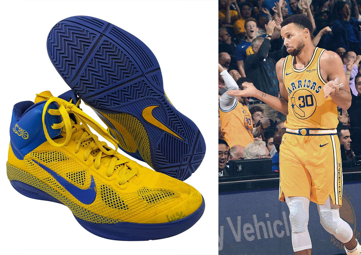 Curry’s old Nike PEs — like this Hyperfuse pair — still pop up and make you think about what could’ve been. This one is actually up for grabs right now through Grey Flannel Auctions.